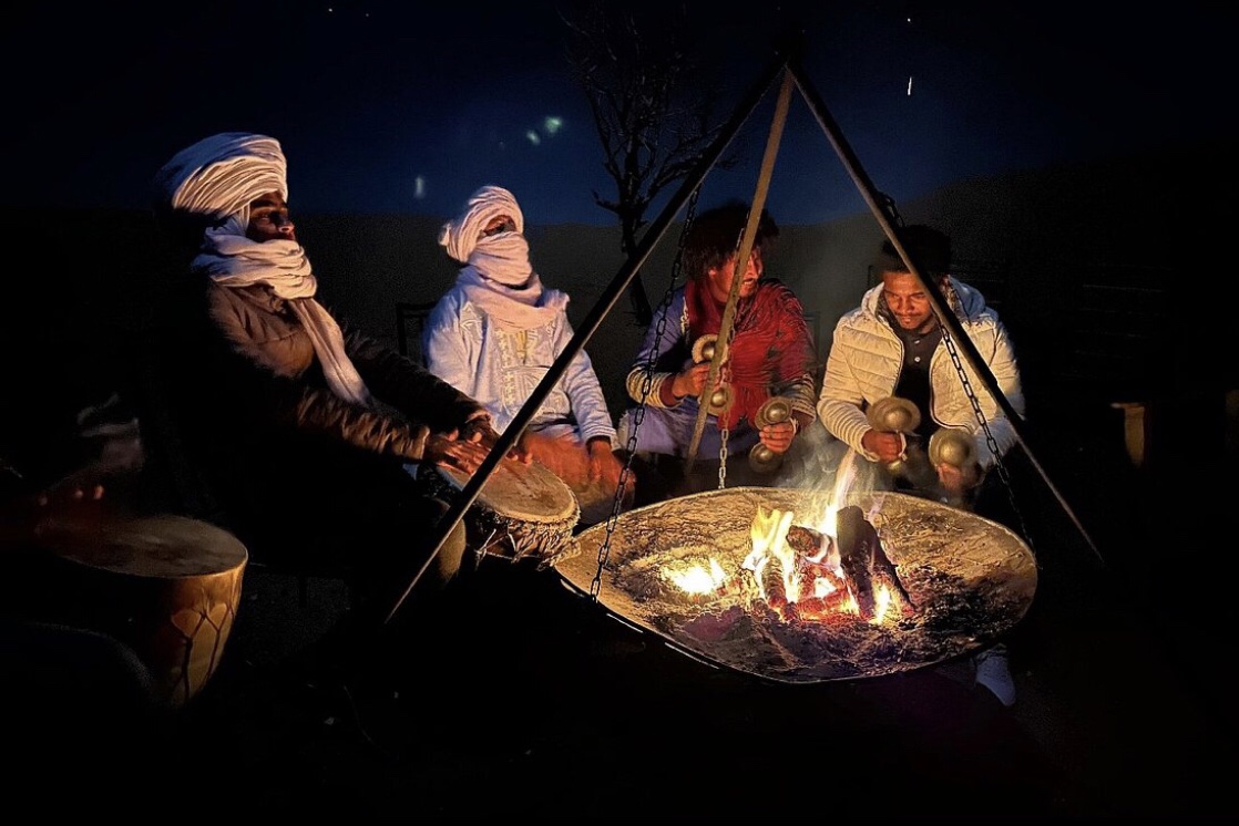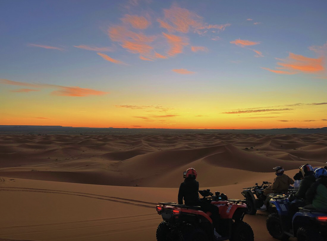 Set out on a Jeep adventure across the dunes of Erg Chebbi, unveiling the enigmatic charm of this wondrous terrain. Engage with local nomads and share a moment over a cup of tea with a welcoming family. Delve into the mystical rhythms at the Gnawa house in Khamleya village, capturing the essence of spiritual healing music. enjoy a traditional meal for lunch in one the local restaurants, Later, choose between exhilarating sandboarding or an invigorating quad ATV ride. Ascend the closest sand dune to witness an amazing sunset over the dunes , then return back to your hotel for an overnight.