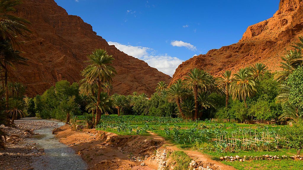 Today, leave the Merzouga dunes behind and the Sahara and head to the magnificent and fertile Draa Valley, which runs like a green belt along the Draa River, cutting through the barren desert landscape. Your journey continues along the longest river in Morocco, past a stone desert or Hammada, where the famous nomadic tribe Ait Atta calls home. Begin today's hike by descending into the valley, reaching an exciting area where many former trade routes run, and local products and specialties are still offered at numerous markets. Cross some villages and meet the Drawis, the inhabitants of the Draa Valley, enjoya 45 min with a local guide to explore the draa valley . After the hike, continue your journey to your kasabh. Experience the beauty of the kasbhs of the Draa Valley on this unforgettable trip.
